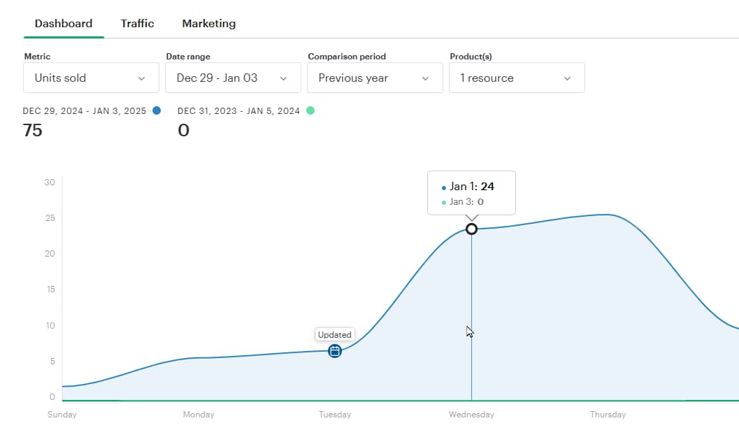 So then I optimized my New Year resource title to include all of those keywords which put me in a better position to rank and sell. Here’s my TPT dashboard: