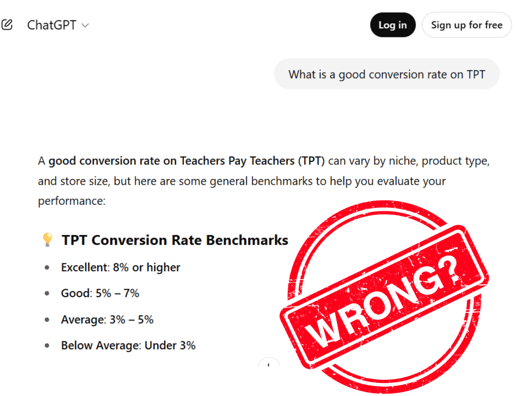 If you ask ChatGPT what a “good” TPT conversion rate is, it’ll say: