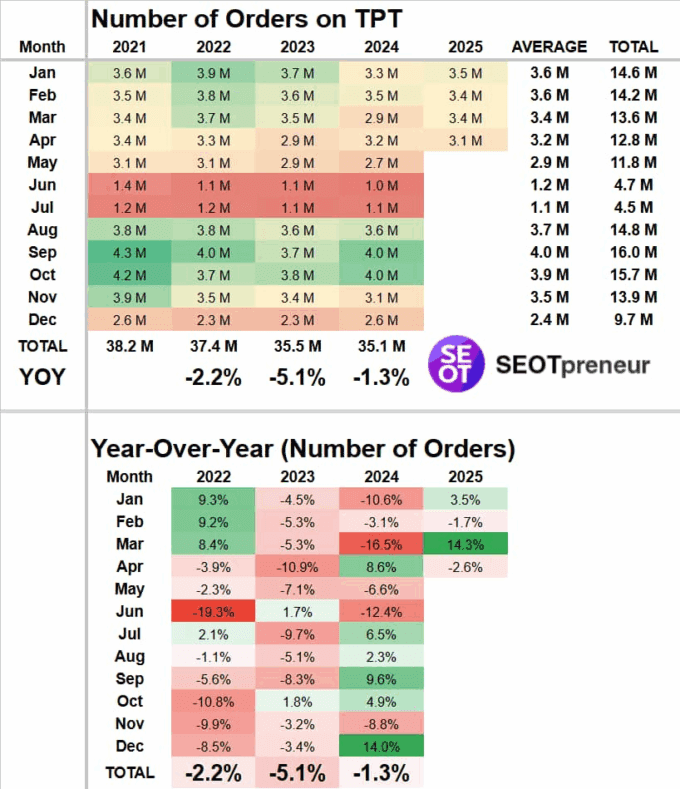 I’ve been digging into the raw TPT order counts for the last four years, and the trend is hard to miss: